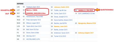 Cincinnati’s two starting defensive tackles, BJ Hill and Sheldon Rankins, were injured last week; both Hill and Rankins suffered hamstring injuries against the Chiefs, with Hill leaving the game in the 2nd quarter and Rankins in the 3rd. Rankins has already been declared “out” for tonight’s game wile Hill is questionable.