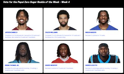 Commanders rookie quarterback Jayden Daniels has played four NFL regular season games and he’s been nominated for each one as the Pepsi Zero Sugar Rookie of the Week, winning the award in Weeks 1 & 3 for his play against the Buccaneers and Bengals on the road.