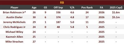 RB: Brian Robinson Jr*, Chris Rodriguez