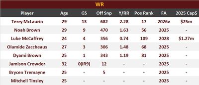 WR: Terry McLaurin*, Luke McCaffrey (slot)*