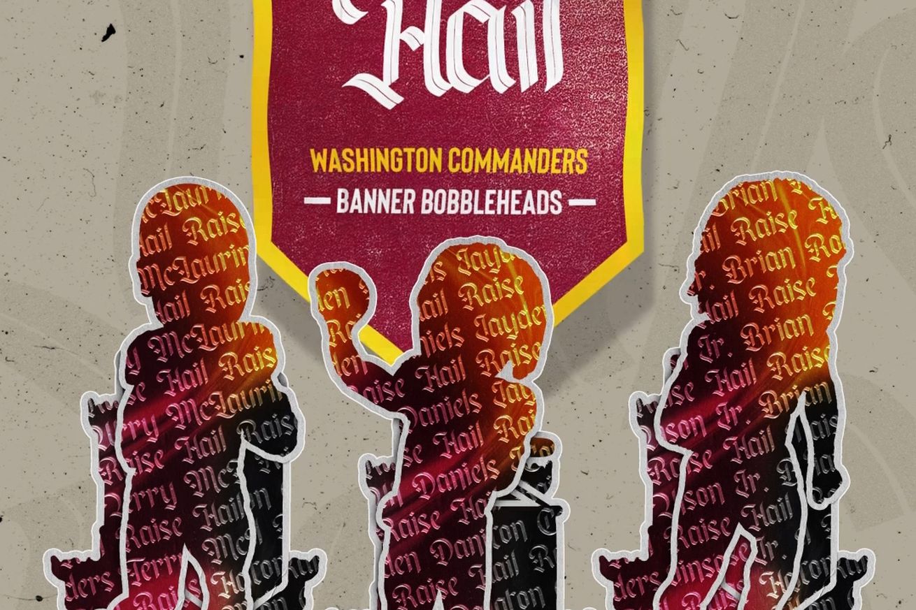 FOCO also has a new set of Raise(Hail) the banners bobbleheads available for the Washington Commanders playoffs run featuring Jayden Daniels, Terry McLaurin, and Brian Robinson Jr.