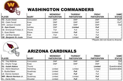 The Washington Commanders enter their Week 4 matchup against the Arizona Cardinals with a few players dealing with injuries.
