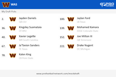In this scenario, Washington will have turned over more than half of their starting offense from 2023. They will also have upgraded at the four most important positions on that side of the ball – QB, LT, C and WR.
