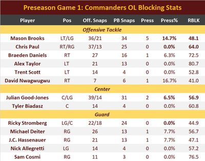 Preseason blocking stats for the Commanders’ OL depth players